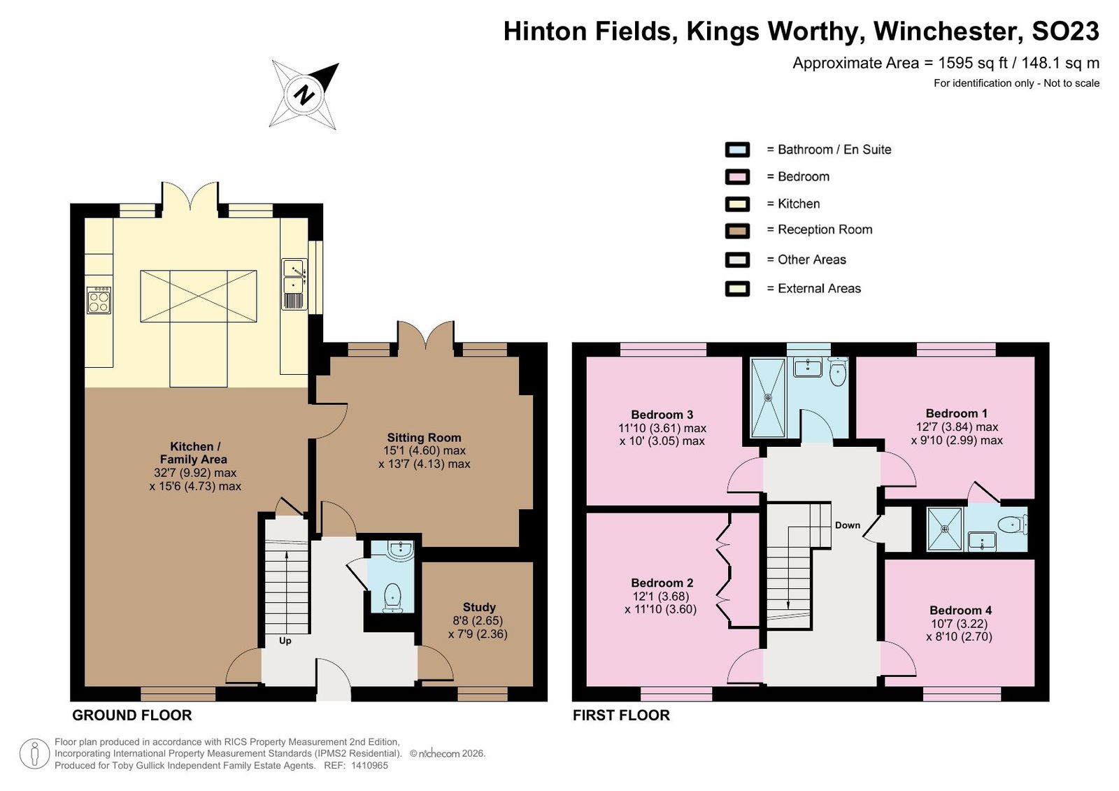 French doors open seamlessly from the kitchen and dining area to the enclosed, landscaped and enchanting wraparound garden, creating a superb indoor–outdoor connection. A sitting room, also opening onto the garden, provides an additional space for relaxing or entertaining, while a front-facing study offers a quiet and practical work-from-home environment. A convenient WC completes the ground floor accommodation.