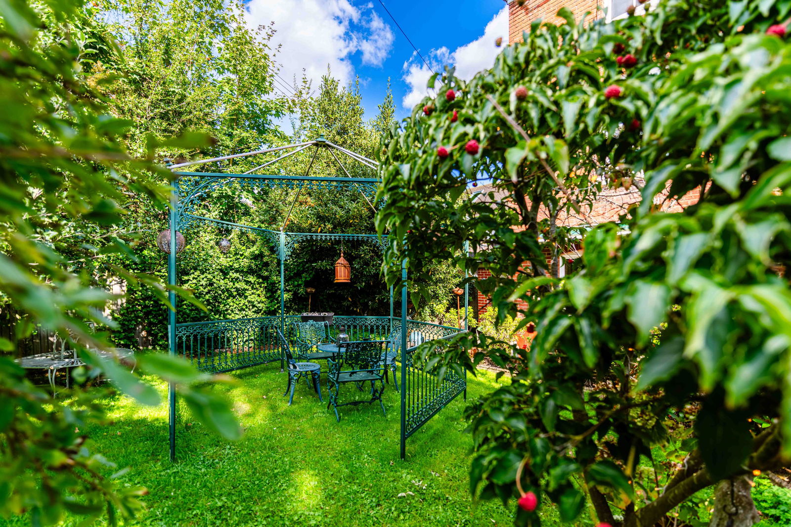With almost perfect symmetry the front is enclosed by a brick wall with pedestrian access on both sides and could create a wonderful in/out driveway (subject to obtaining the relevant consents). The side access then opens to the side patio garden with flagstone paving, planted borders with an array of flora and fauna and well-established shrubs and a raised lawn. The rear garden has been cleverly designed creating several pretty seating areas, ideal for entertaining and Alfresco dining. There is rear gated access to the driveway parking and garage. The garage has been partly converted and currently used as an Artist studio.